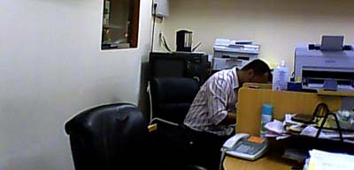 He stays with me till my shift is over. For someone who stays ALONE in the showroom at nights, another breathing human being calms my nerves.