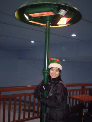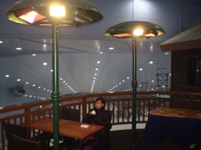 Lamp-heater post by the cozy cafe at the top of the ”mountain”.