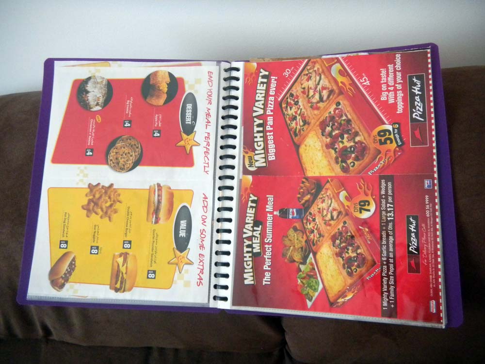 So whenever he gets hungry, he just flips, selects and calls. Then we sit patiently and wait for the delivery guy’s doorbell. Pronto!