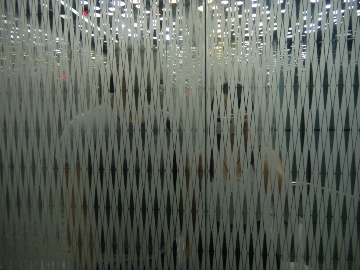 The glass walls.