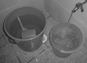 Our bathtub has never been filled for a soak bath. Also, we reserve the water heater only for the cold mornings of the ”ber” months. The shower is replaced by timba and tabo (pail and dipper). The maximum water allowance for each bath is two pails.