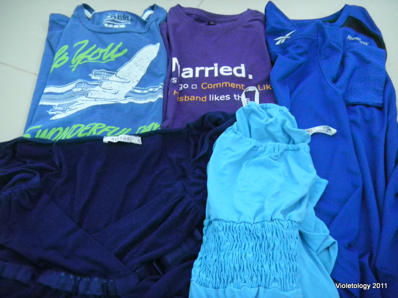 I gathered some shirts and skirts with different shades of blue.
