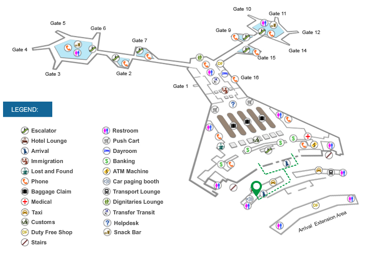 - Terminal 3 – the secondary arrival curbside between Bays 5 and 6