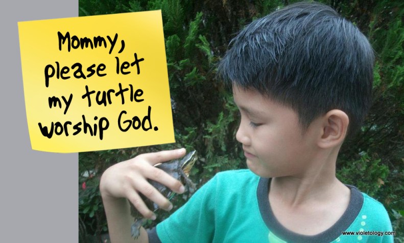 What he says when he wants to bring his turtle to church.